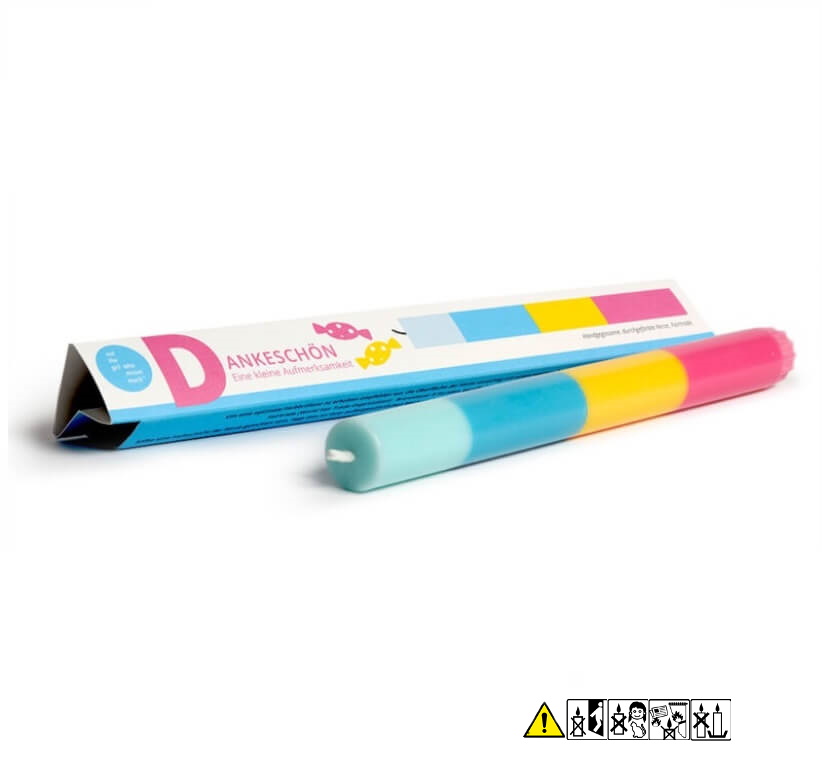 Bunte Stabkerze "Dankeschön" 22 x 230 mm (ohne Deko)