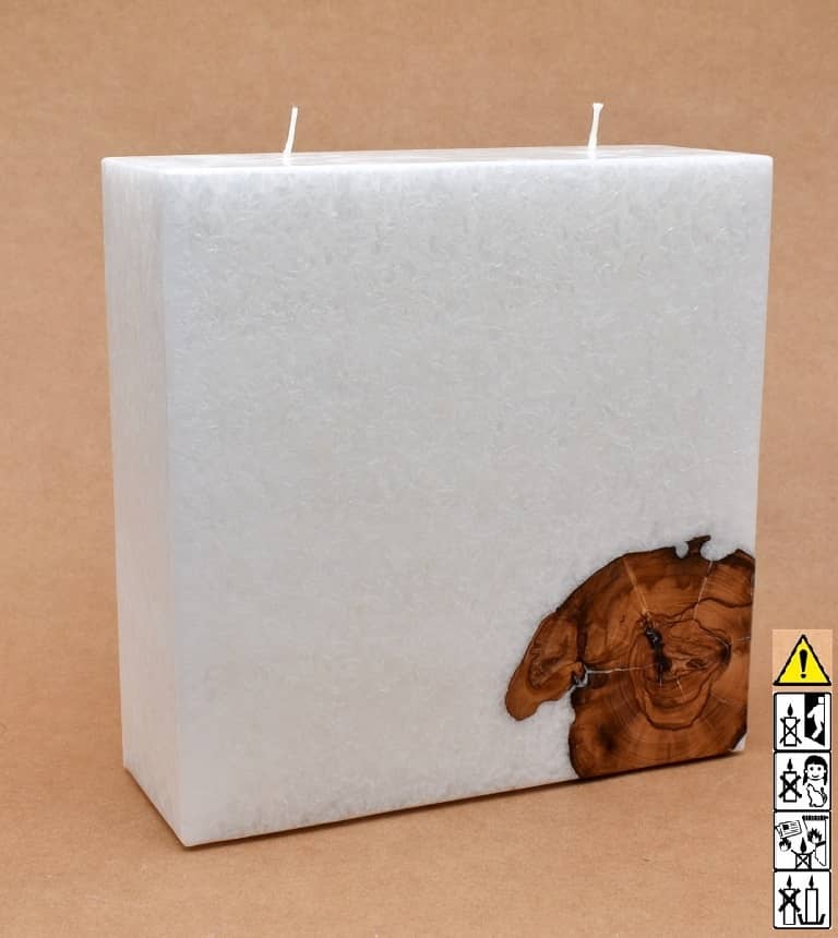Quader Kerze in Stearinoptik 70 x 200 x 200 mm mit 1 x Holz / 2 x Teelicht.