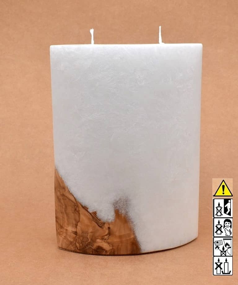 Kerze mit Holz Oval Kanten spitz 210 x 140 x 80 mm 2 x Docht. Nr.: 6