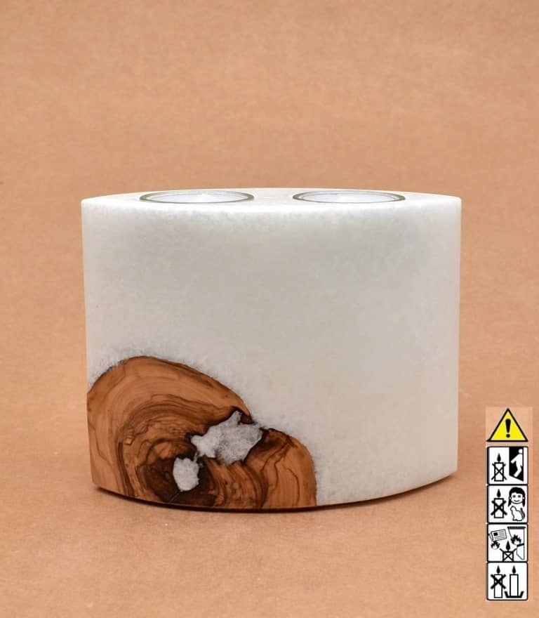 Kerze mit Holz Unikat Oval 80 x 140 x 120 mm mit 2 Teelichter Nr.: 3