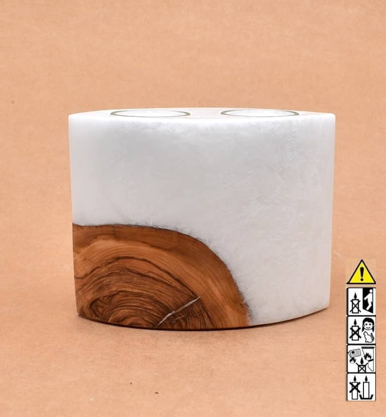 Kerze mit Holz Unikat Oval 80 x 140 x 120 mm mit 2 Teelichter Nr.: 6