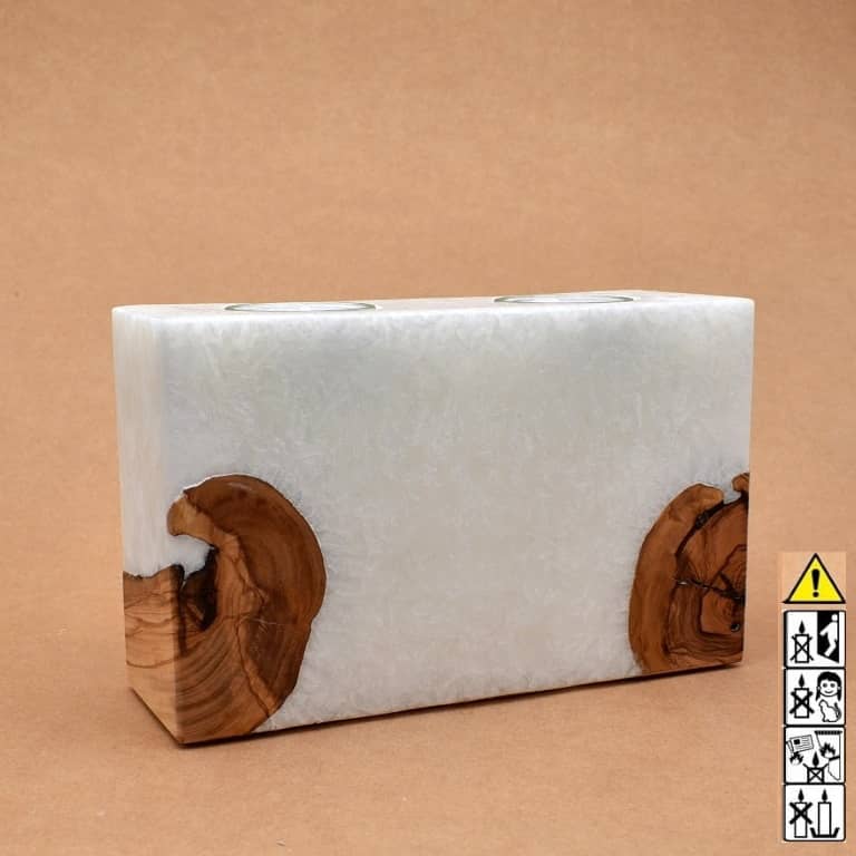 Quader Kerze in Stearinoptik 60 x 200 x 120 mm mit 2 x Holz / 2 x Teelicht.