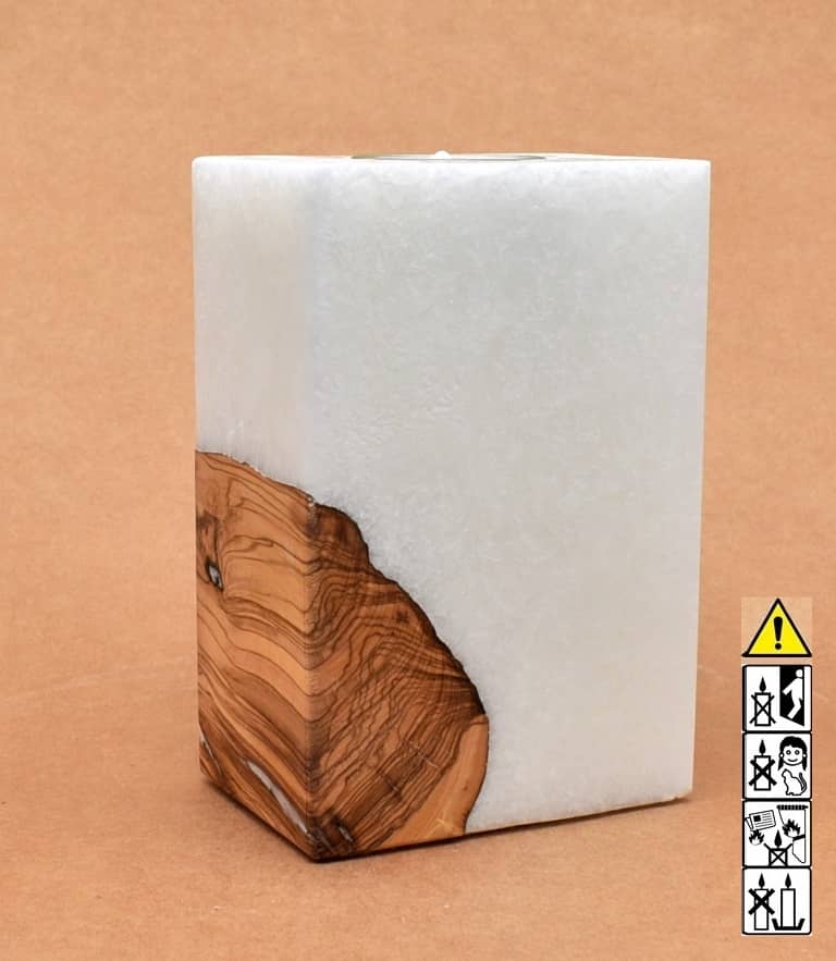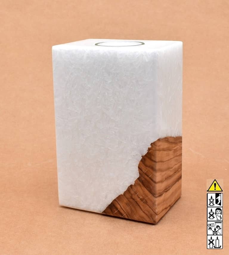Kerze mit Holz Unikat Quader 70 x 100 x 150 mm mit 1 x Teelicht Nr: 2