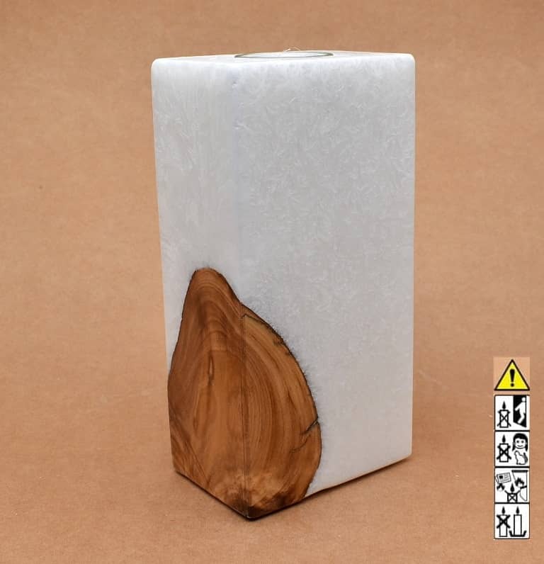 Quader Kerze in Stearinoptik 70 x 100 x 200 mm mit Teelicht mit 1 x Holz.