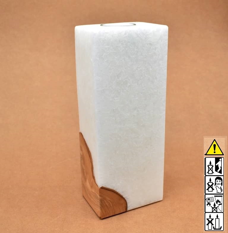 Quader Kerze in Stearinoptik 70 x 100 x 250 mm mit Teelicht und Holz.