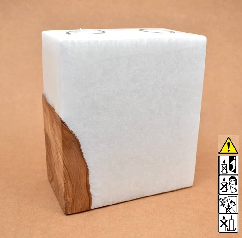 Quader Kerze in Stearinoptik 95 x 175 x 200 mm mit 2 x Holz / 2 x Teelicht.