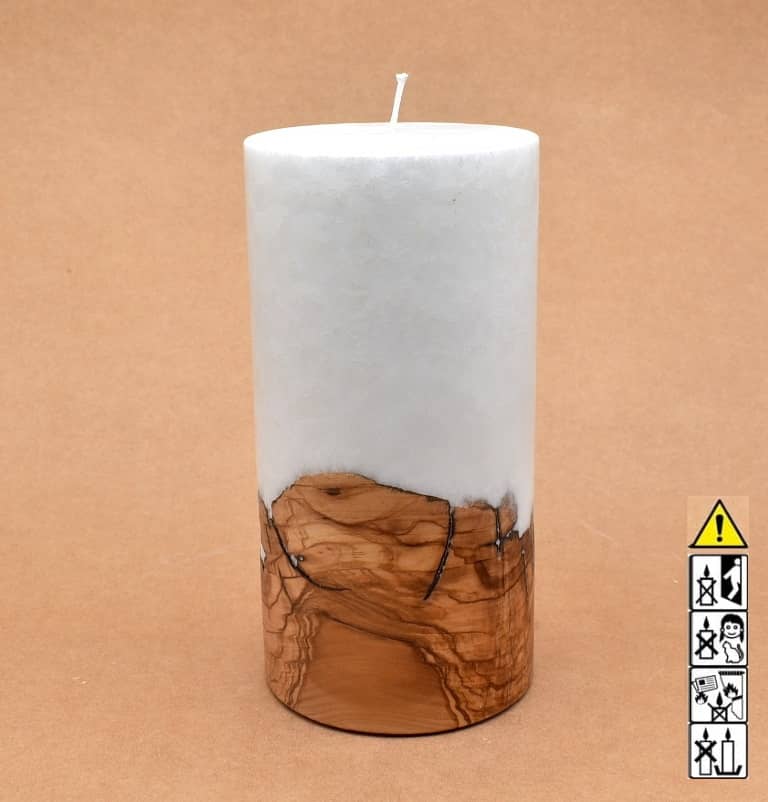 Jede Kerze mit Holz wird von Hand hergestellt und bearbeitet.