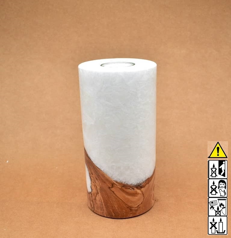 Runde Kerze in Stearinoptik 100 x 200 mm mit Teelicht und Holz.