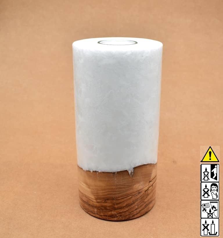 Runde Kerze in Stearinoptik 100 x 200 mm mit Teelicht und Holz.