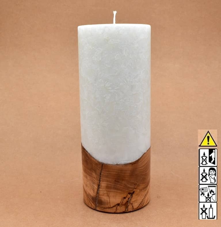 Runde Kerze in Stearinoptik 100 x 250 mm mit Holz und Docht.