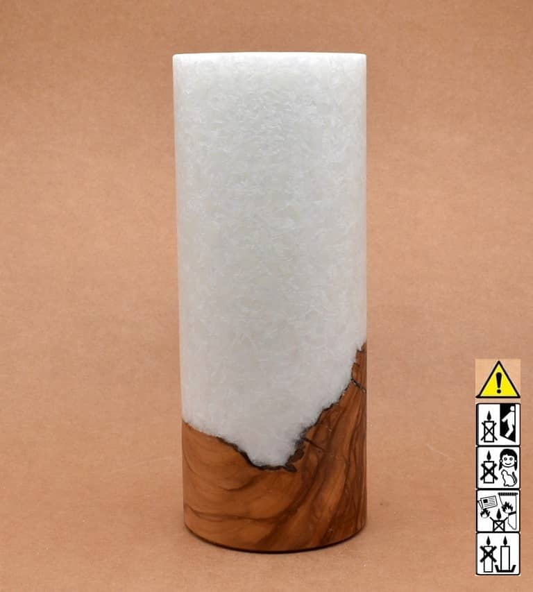 Runde Kerze in Stearinoptik 100 x 250 mm mit Teelicht und Holz.