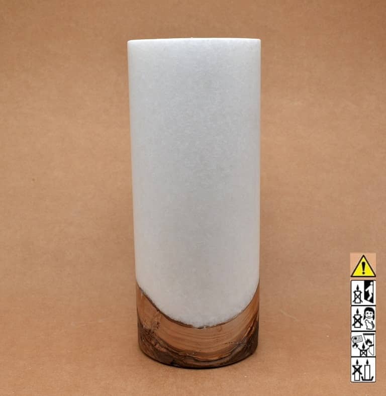 Runde Kerze in Stearinoptik 100 x 250 mm mit Teelicht und Holz.