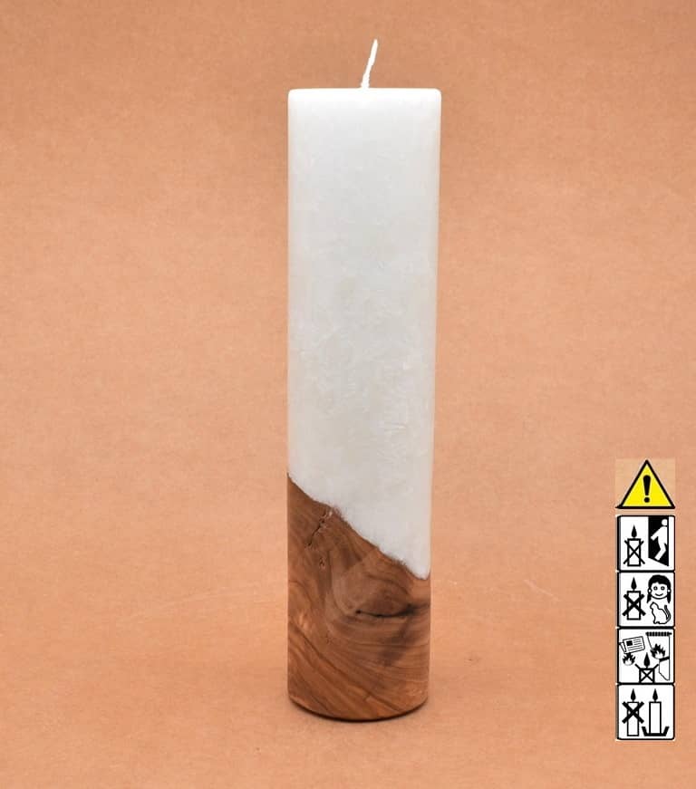 Jede Kerze mit Holz wird von Hand hergestellt und bearbeitet.