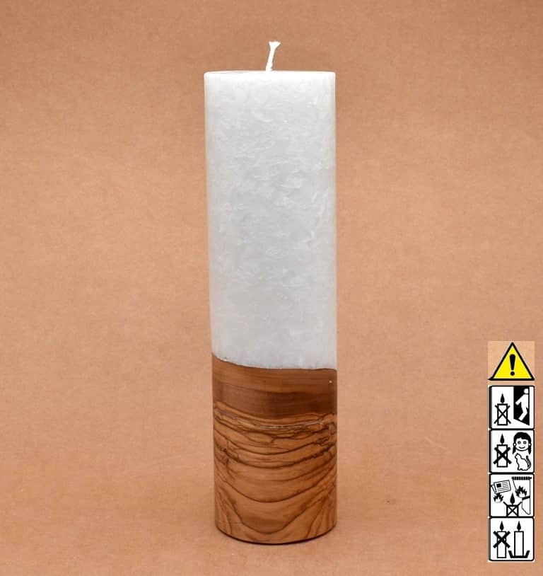 Runde Kerze in Stearinoptik 70 x 250 mm mit Holz und mit Dochteinsatz.