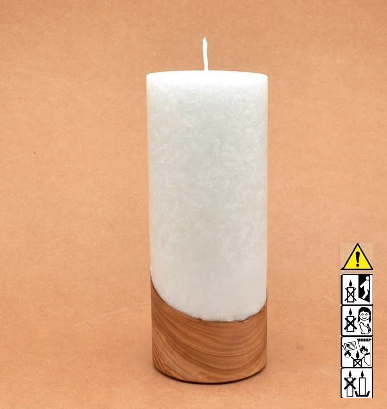 Runde Kerze in Stearinoptik 80 x 200 mm mit Docht und Holz.