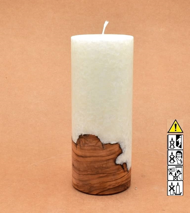 Kerze mit Holz Unikat Rund 80 x 200 mm mit Docht Nr.: 15