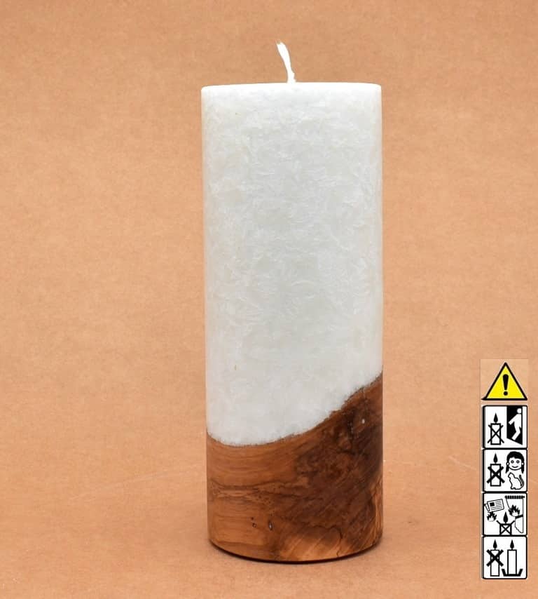 Jede Kerze mit Holz wird von Hand hergestellt und bearbeitet.