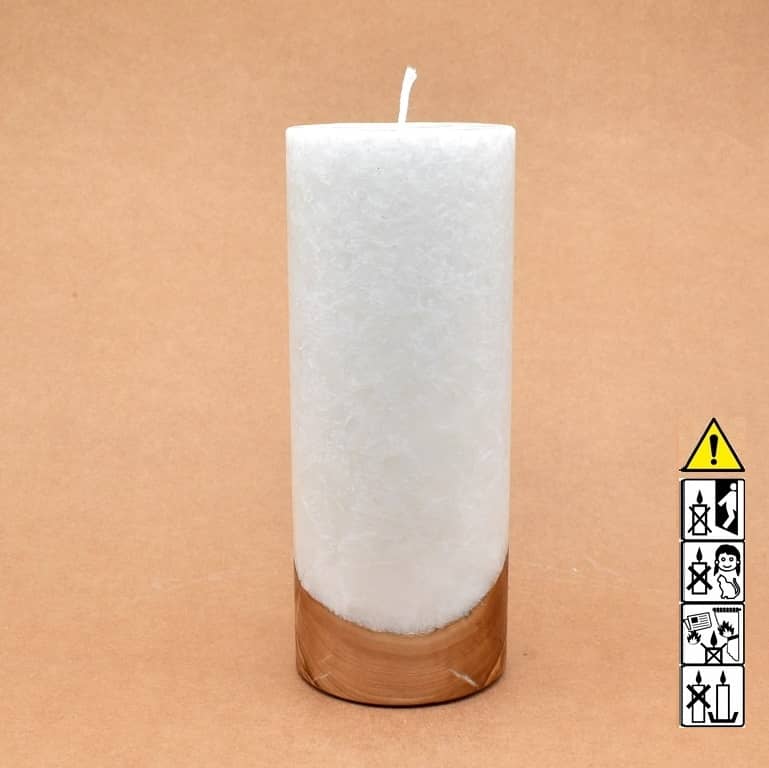 Runde Kerze in Stearinoptik 80 x 200 mm mit Docht und Holz.
