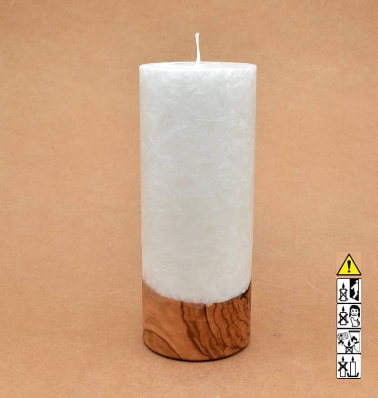 Runde Kerze in Stearinoptik 80 x 200 mm mit Docht und Holz.