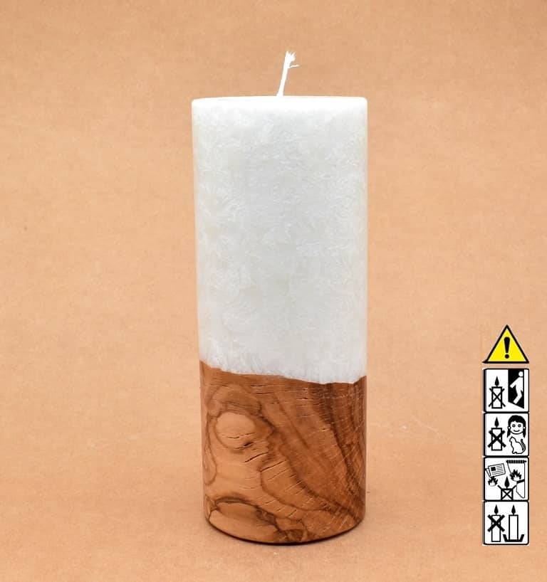 Kerze mit Holz Unikat Rund 80 x 200 mm mit Docht Nr.: 6