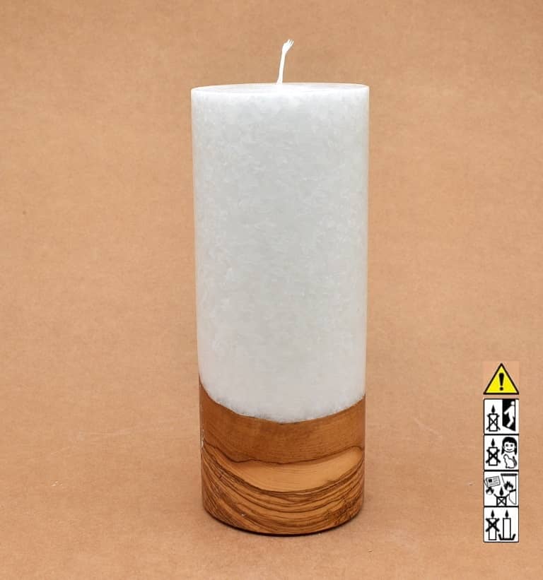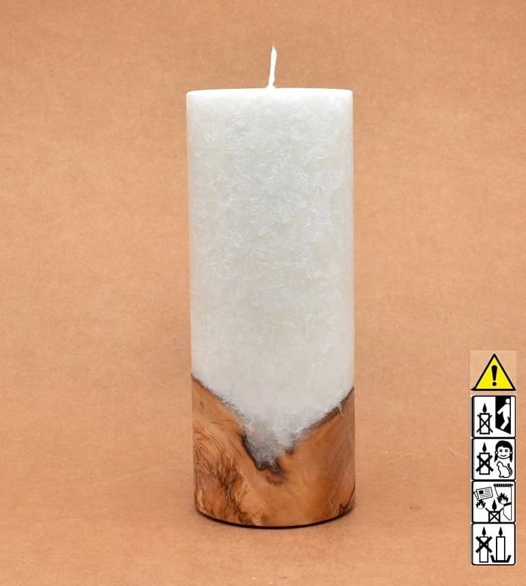 Runde Kerze in Stearinoptik 80 x 200 mm mit Docht und Holz.