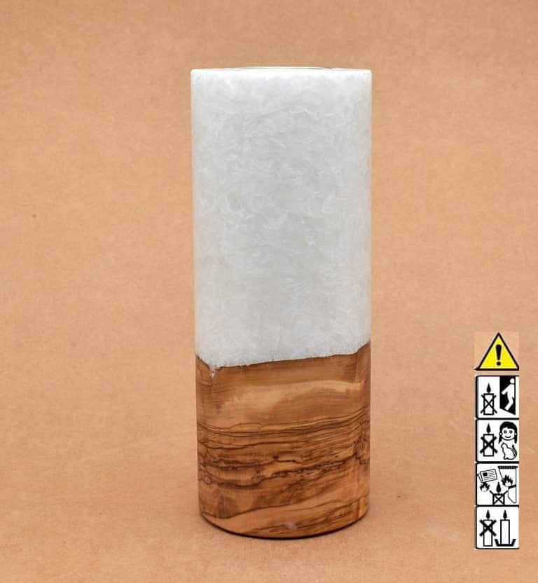 Runde Kerze in Stearinoptik 80 x 200 mm mit Teelicht und Holz.