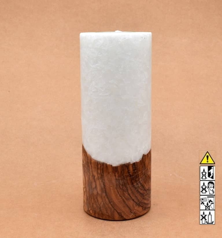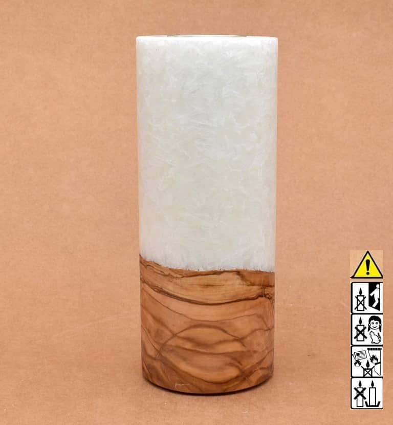 Runde Kerze in Stearinoptik 80 x 200 mm mit Teelicht und Holz.