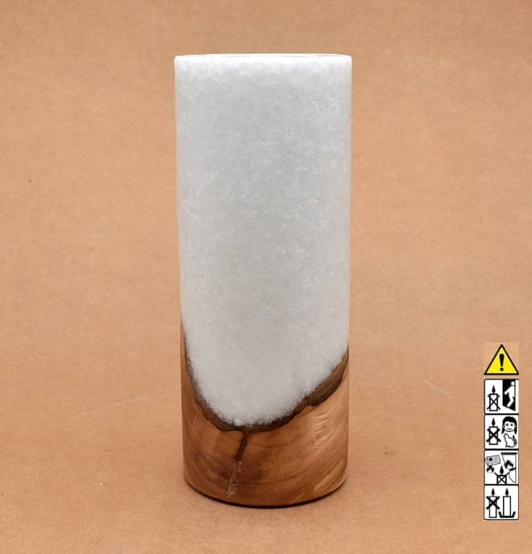 Runde Kerze in Stearinoptik 80 x 200 mm mit Teelicht und Holz.