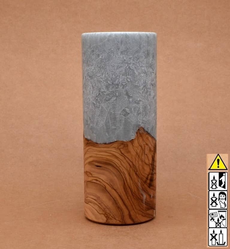 Kerze mit Holz Unikat Rund 80 x 200 mm mit Teelicht in silbergrau Nr.: 4