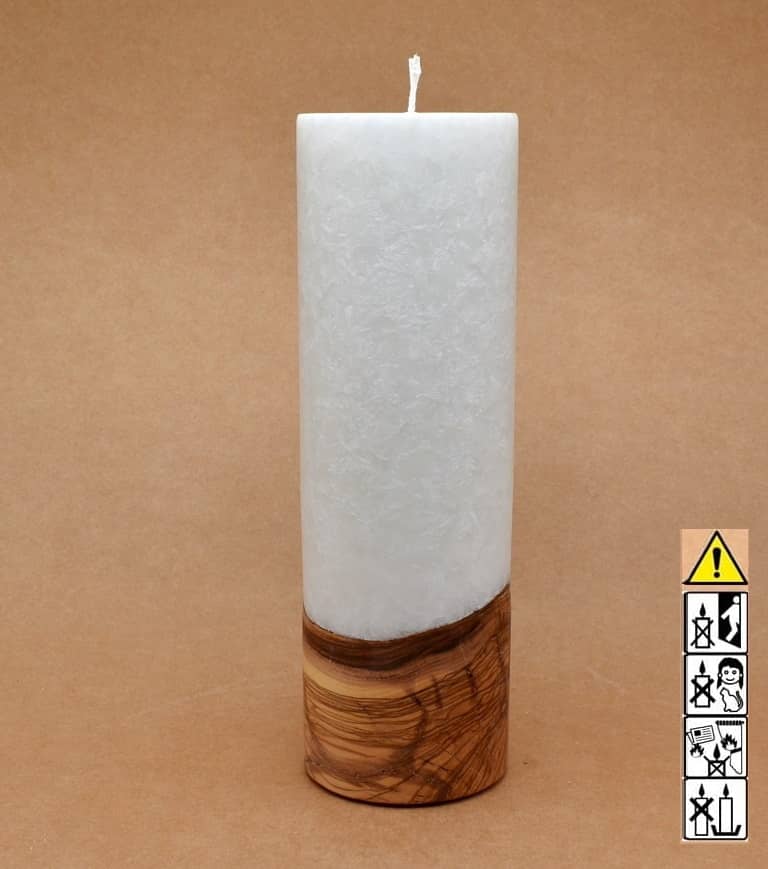 Runde Kerze in Stearinoptik 80 x 250 mm mit Holz und mit Dochteinsatz.