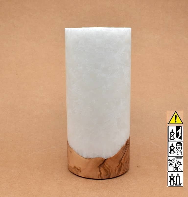 Runde Kerze in Stearinoptik 90 x 200 mm mit Teelicht und Holz.