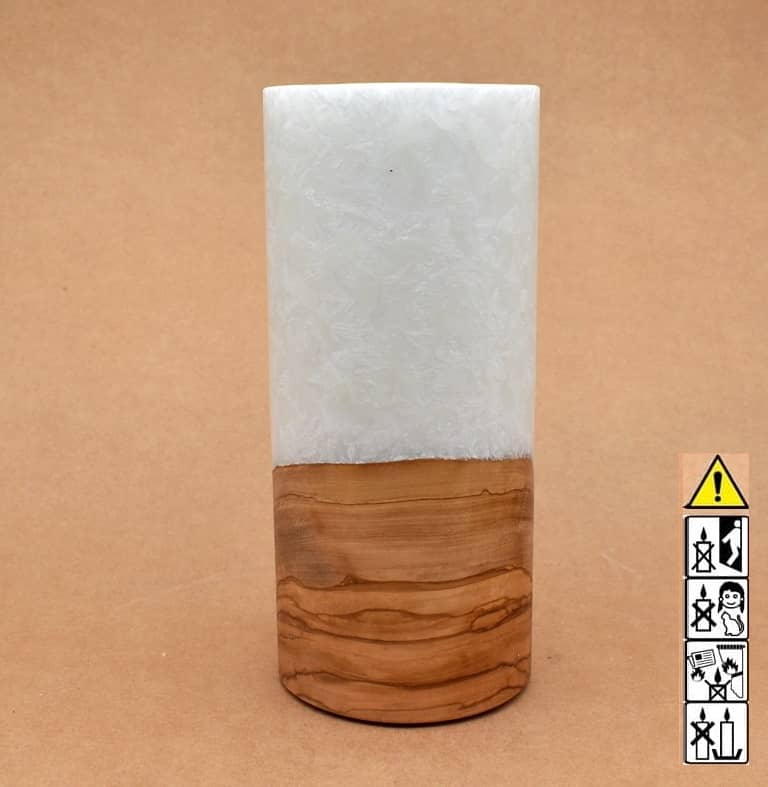 Jede Kerze mit Holz wird von Hand hergestellt und bearbeitet.