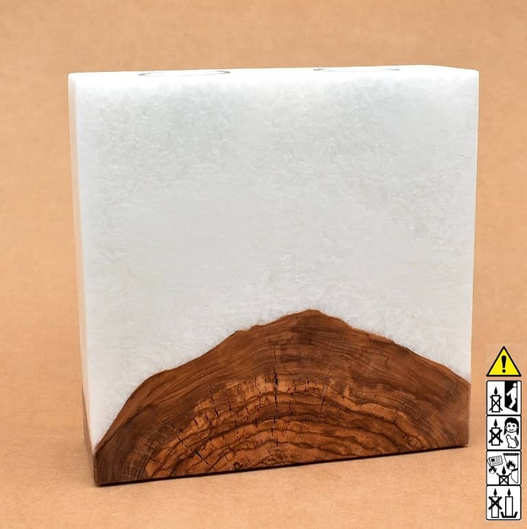 Eine einmalige Optik durch das Eingießen des Holzelementes, welches für sich schon ein Unikat ist.