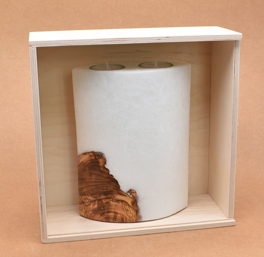 Die Kerzenbox aus Holz Gr.16 mit Schiebedeckel aus Holz 240 x 240 x 90 mm ist auch mit Plexiglasscheiben zu erhalten.