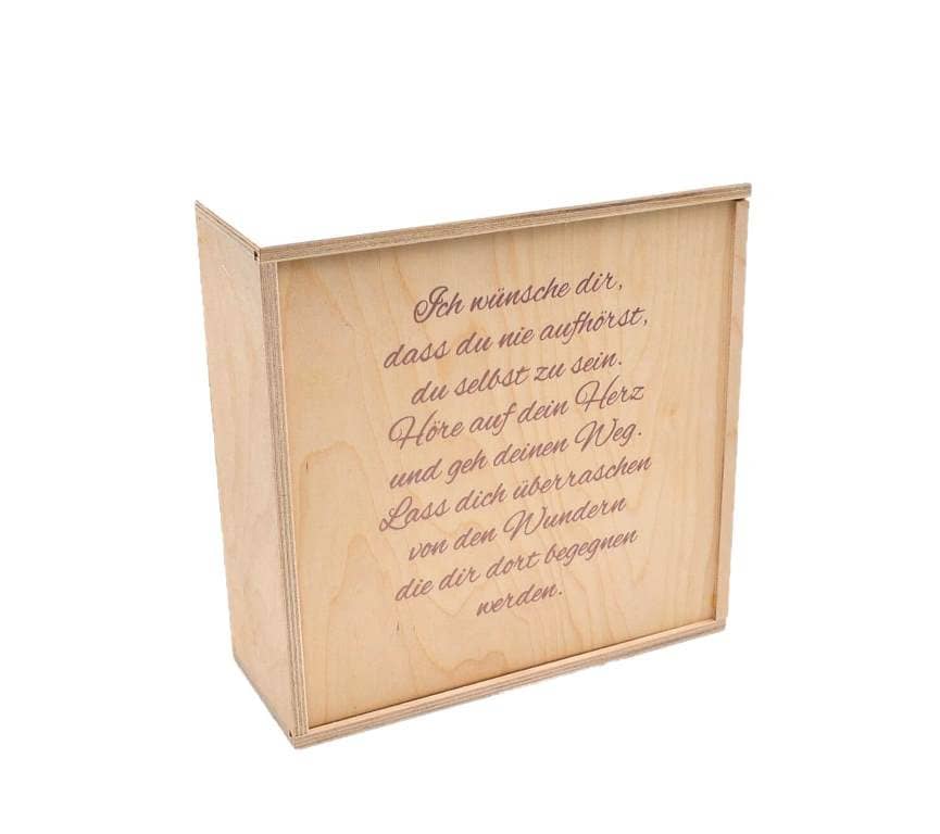 Geschenkboxen sind aus Holz gefertigt und können Holzsplitter haben